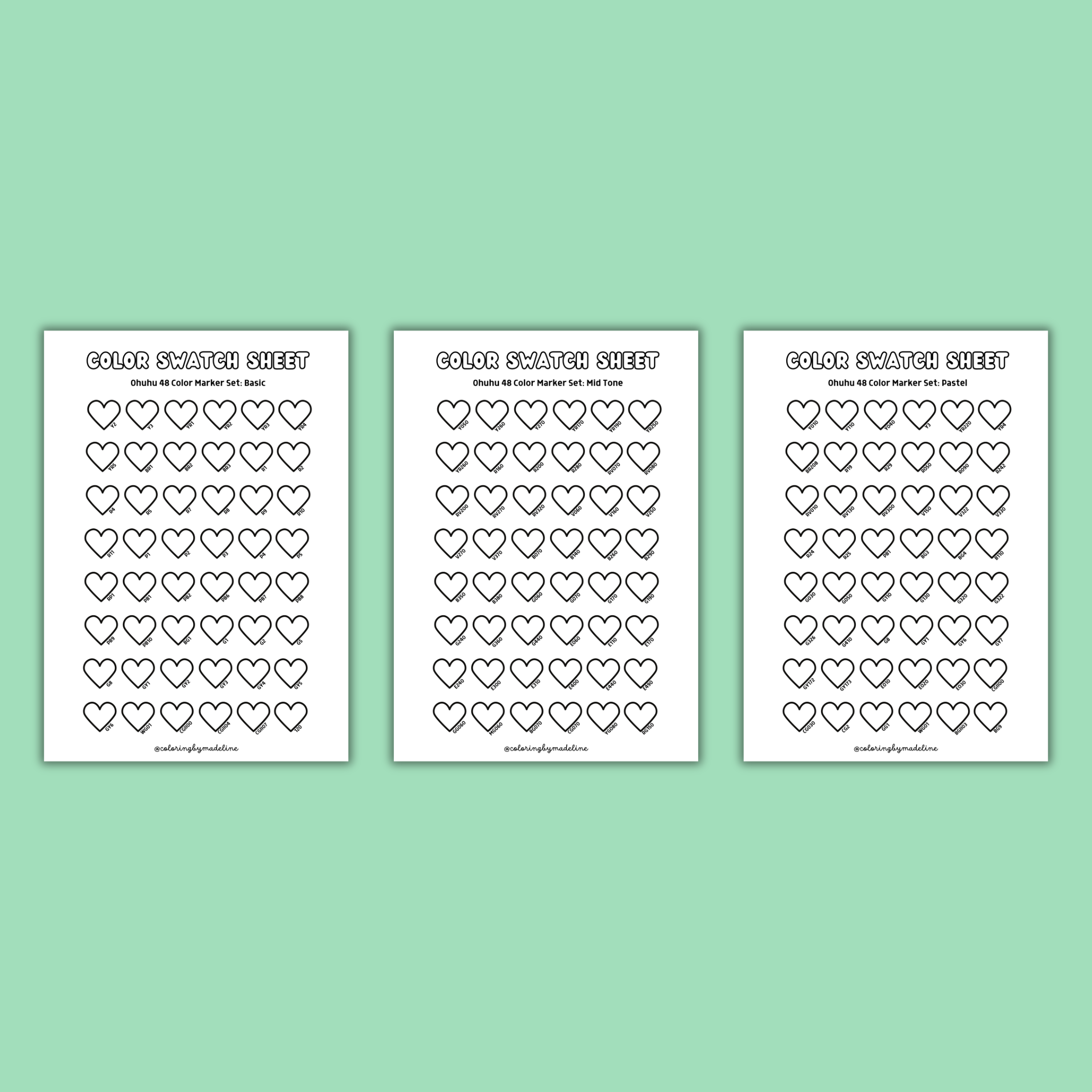 Nestačí vám kartičky přiložené k fixům a chcete vidět, jak odstíny skutečně vypadají na bílém papíře? Jste na správném místě! Po zadání e-mailu vám zašleme 3 paletky barev pro sady Ohuhu: Basic, Mid-tone a Pastel (každá pro 48 fixů).